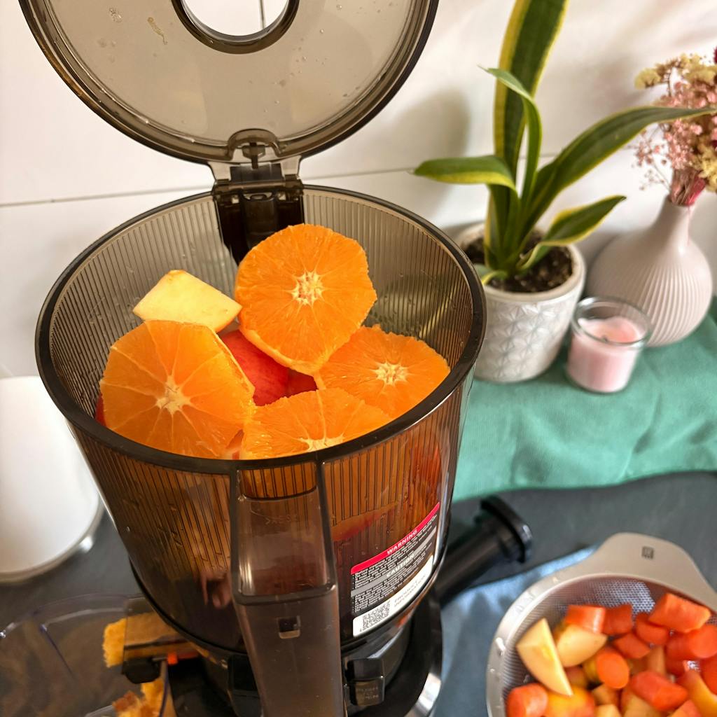 ★★★★★F.O. - Verified BuyerIch bin sehr zufrieden damit, weil ich nicht die ganze Zeit danebenstehen muss, während er arbeitet. Ich kann Obst und Gemüse einfach zusammen hineingeben und er arbeitet komplett selbstständig – und liefert eine große Saftmenge. Außerdem ist er angenehm leise. Die Reinigung ist ebenfalls unkompliziert.