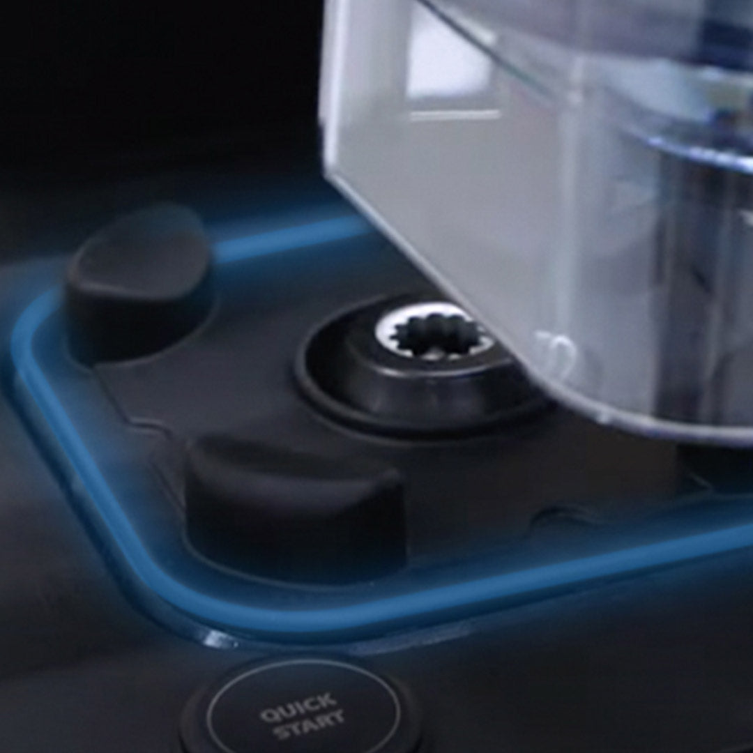 Safety sensor detects when the container is placed securely on the base.