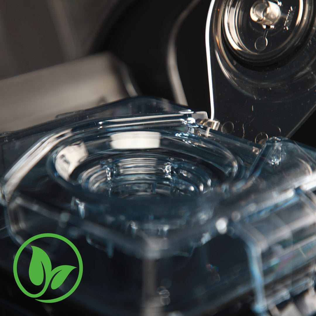 The noise-reducing hood automatically closes for added convenience and optimal noise reduction.