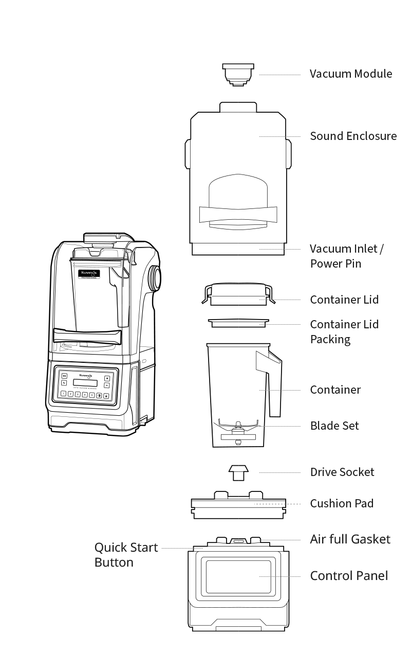 • Removes air from the container before blending to prevent oxidation and minimize nutrient destruction.